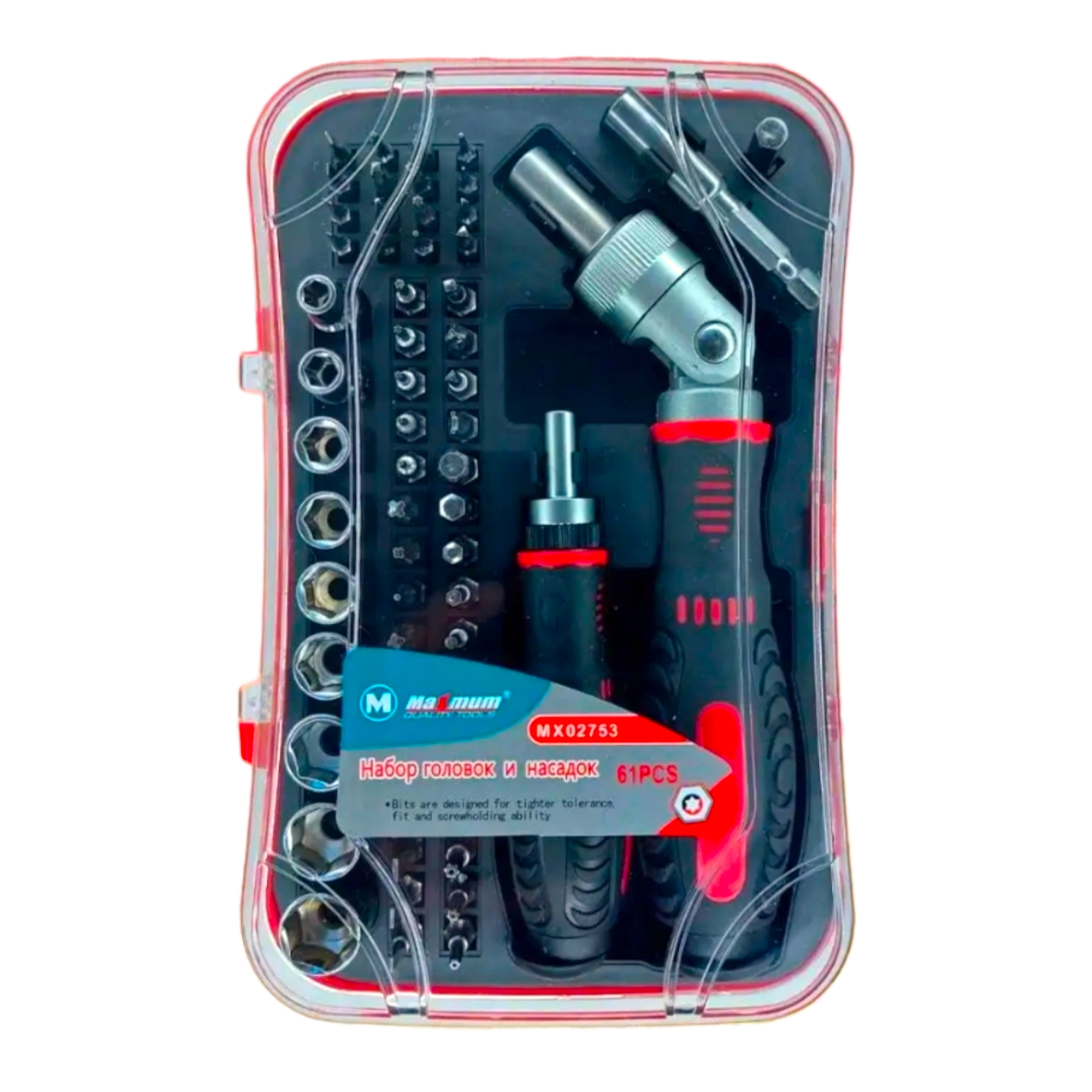 Набор головок и насадок 61 предмет, с храповым механизмом,"MAXIMUM" (2710)
