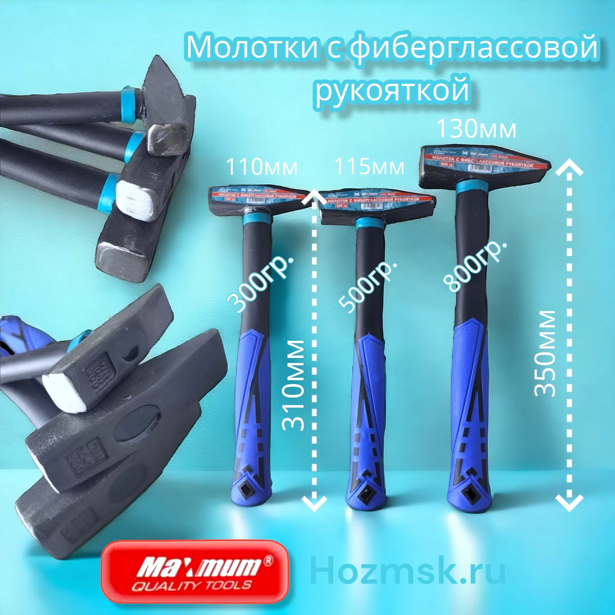 Молоток 800 гр. с фиберглассовой рукояткой от "MAXIMUM" - это универсальный инструмент, предназначенный для широкого спектра работ.