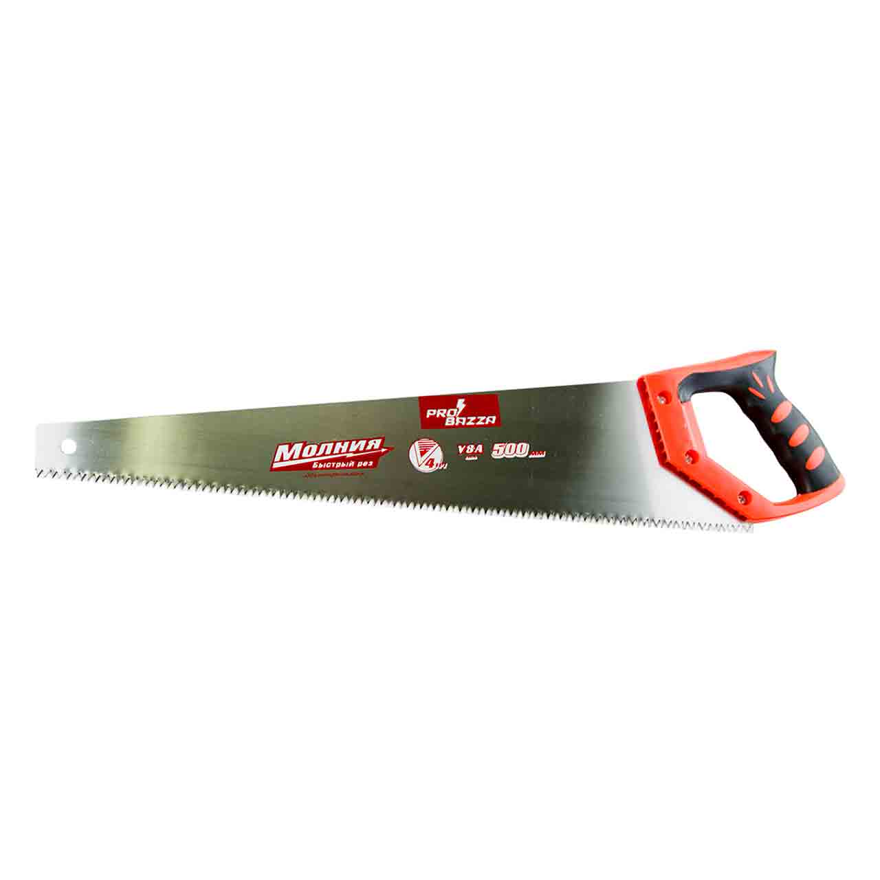 Универсальная пила 500 мм от бренда "Probazza" предназначена для распиловки древесины, фанеры, ДВП, ДСП, ламината, пластмассы, и др. Имеет закаленные, заточенные с трех сторон зубья, что уменьшает сопротивление материала и облегчает распиливание. Эргономичная пластиковая ручка прорезинена, благодаря чему не скользит и не травмирует руки.